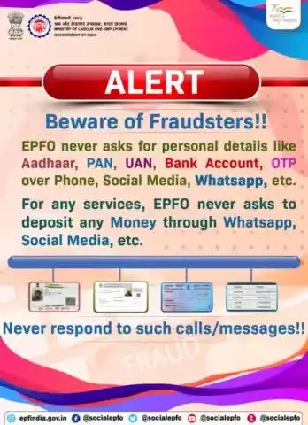 #EPFO never asks its members to share their personal details like Aadhar, PAN, UAN, Bank Account or OTP over phone or on