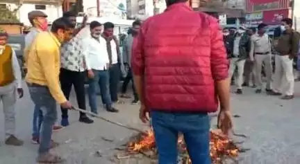 भूपेश बघेल जी के खिलाफ FIR दर्ज किए जाने पर योगी आदित्यनाथ का पुतला दहन रायगढ़ nsui