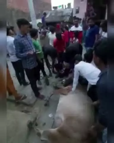 राष्ट्रीय बजरंग दल पूरनपुर पीलीभीत रामपुरा कपूरपुर गांव के पास नंदी का कराया इलाज