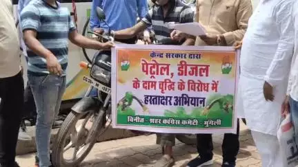 मुंगेली शहर कांग्रेस कमेटी द्वारा बढ़ते हुए दाम लगातार पेट्रोल डीजल के केंद्र सरकार के विरोध में
