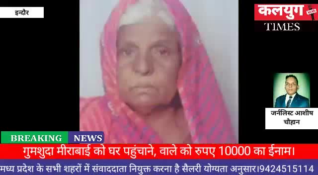 इंदौर: @गुमशुदा मीराबाई को घर पहुंचाने वाले शख्स को उचित इनाम दिया जाएगा।@ परिवार बेहाल है कृपया मदद करें।