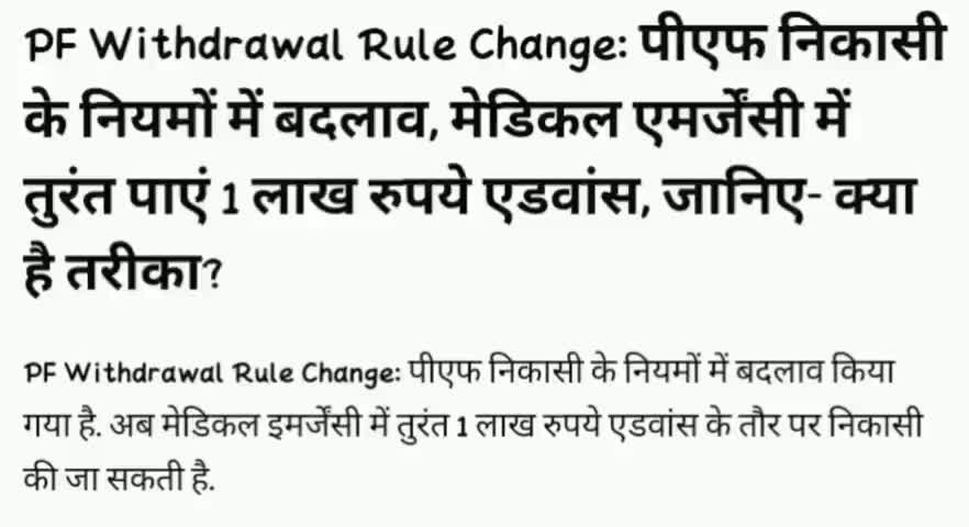 जयपुर: पीएफ निकासी के नियमों में बदलाव, मेडिकल एमर्जेंसी में तुरंत पाएं 1 लाख रुपये एडवांस, जानिए- क्या है तरीका?