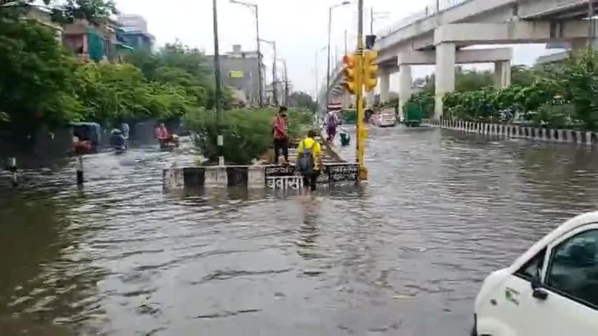 भारी बारिश के चलते हैं लगा जहांगीरपुरी में लगभग 1 किलोमीटर लंबा जाम