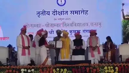 नीलांबर पीतांबर विश्वविद्यालय का तीसरा दीक्षांत समारोह सोमवार दोपहर 12 बजे जीएलए कॉलेज स्टेडियम में आयोजित किया गया। कार्यक्रम में बतौर मुख्य अतिथि झारखंड के राज्यपाल संतोष गंगवार, विशिष्ट अतिथि राज्य के वित्त मंत्री राधाकृष्ण किशोर, पलामू के सांसद विष्णु दयाल राम, चतरा के सांसद कालीचरण सिंह, पूर्व विधानसभा अध्यक्ष इंदर सिंह नामधारी शामिल हुए।