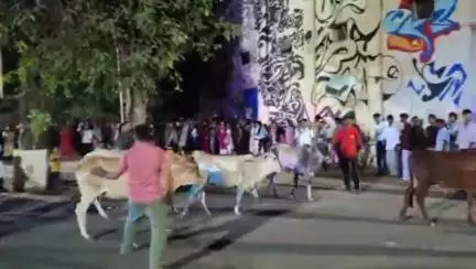 નવસારી: દશેરા ટેકરી વિસ્તારમાં ચાલતા શરદપૂર્ણિમાના ચાલતા મહારાસમાં અચાનક ગાયોનું ધણ આવી પહોંચ્યું