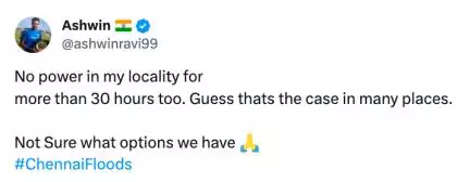 मेरे इलाके में 30 घंटे से अधिक समय से बिजली नहीं है: चक्रवात मिचौंग के बीच रविचंद्रन अश्विन #मिचौंग
