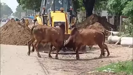 નડિયાદ મહાનગરપાલિકા હદમાં કપડવંજ હાઇવે પર બિલોદરા ફાટક પાસે જાહેરમાં આખલા યુદ્ધ જોવા મળ્યું એક તરફ ગુજરાત હાઇકોર્ટમાં આજે રખડતા ઢોર મામલે સુનવણી કરવામાં આવી તો બીજી તરફ નડિયાદમાં હાઇવે પર આખલા યોજના દ્રશ્યો જોવા મળ્યા હતા હાઈવે પર આખલા લડતા લડતા રોડ પર ઉતર્યા હતા જેને લઇ અહીંથી પસાર થતાં મુસાફરો અને વાહન ચાલકોના જીવ ટાળવે ચોટ્યા હતા.