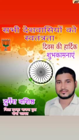 सभी देशवासियों को स्वतंत्रता दिवस की बहुत बहुत बधाई और शुभकामनाएं दुर्गेश वशिष्ठ जिला प्रवक्ता युवा मोर्चा भाजपा
