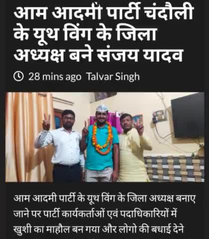 संजय यादव बने आम आदमी पार्टी AYW चंदौली के जिलाध्यक्ष।