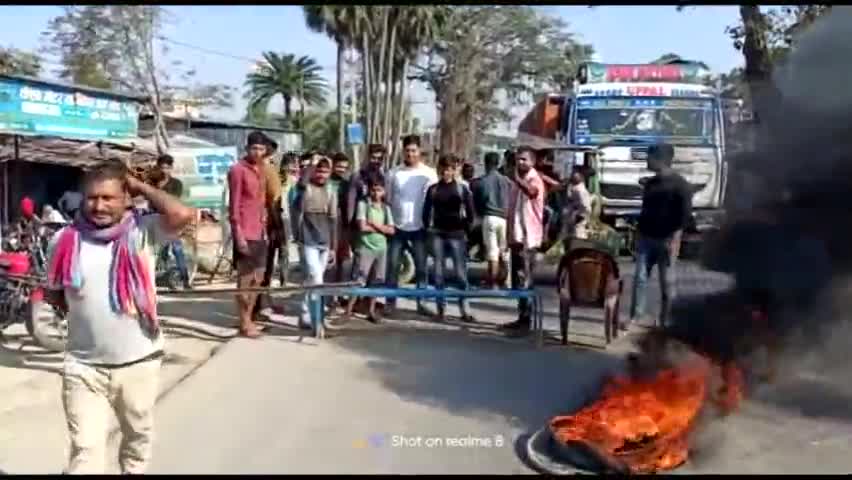 आज मनीष कश्यप के समर्थन में बहेडा बहेड़ी सड़क को जरिसो चोक पर जाम करते हुए ग्रामीण युवक।