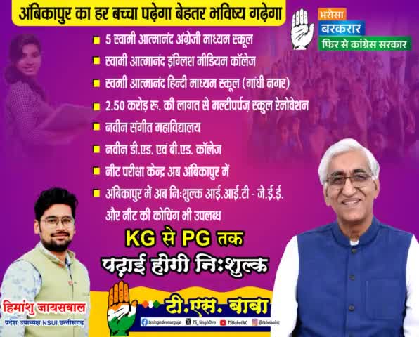 अंबिकापुर का हर बच्चा पढ़ेगा बेहतर भविष्य गढ़ेगा. #अंबिकापुर_चले_बाबा_संग #हमारा_भरोसा_कांग्रेस #फिर_से_कांग्रेस_लाएंगे