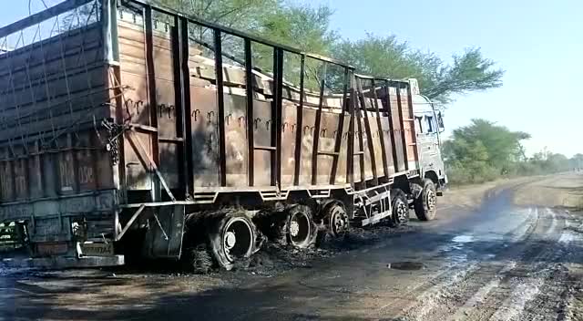 हटा/-गैसाबाद गांव के समीप ,चलते ट्रक में अचानक तेज धमाका से आग लगी, सुबह करीबन 6 बजे की घटना,चालक बाल बाल बचा ।