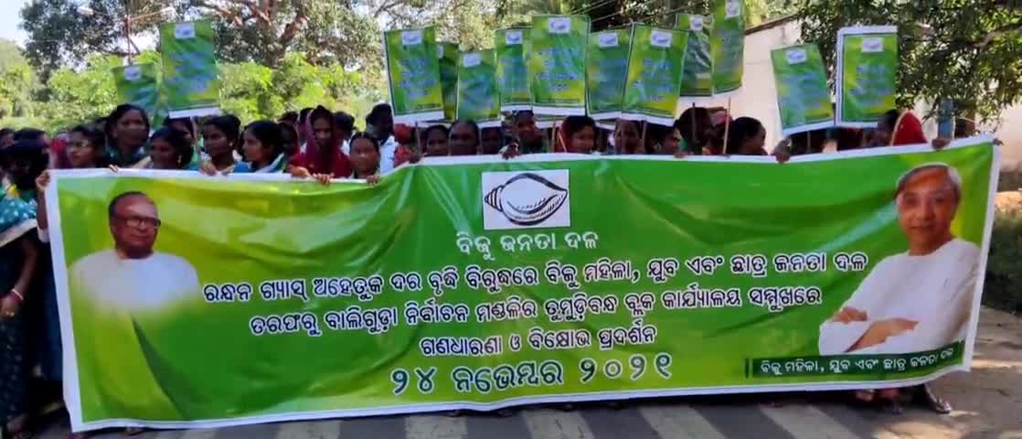 ତୁମୁଡିବନ୍ଧ: ରନ୍ଧନ ଗ୍ୟାସ ଓ ପେଟ୍ରୋଲ, ଡିଜେଲ ଦର ବୃଦ୍ଧି ବିରୋଧରେ ବ୍ଲକ କାର୍ଯ୍ୟାଳୟ ସମ୍ମୁଖରେ ତୁମୁଡିବନ୍ଧ ବିଜେଡିର ପ୍ରତିବାଦ ଶୋଭାଯାତ୍ରା