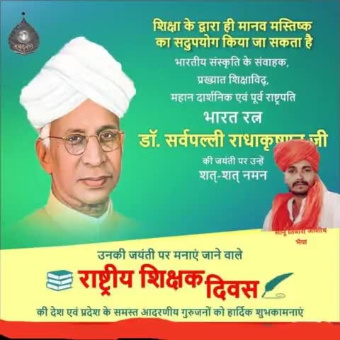 "शिक्षा के द्वारा ही मानव मस्तिष्क का सदुपयोग किया जा सकता है" भारतीय संस्कृति के संवाहक, प्रख्यात शिक्षाविद्, महान दार्शनिक एवं पूर्व राष्ट्रपति भारत रत्न डॉ. सर्वपल्ली राधाकृष्णन जी की जयंती पर उन्हें शत्-शत् नमन।