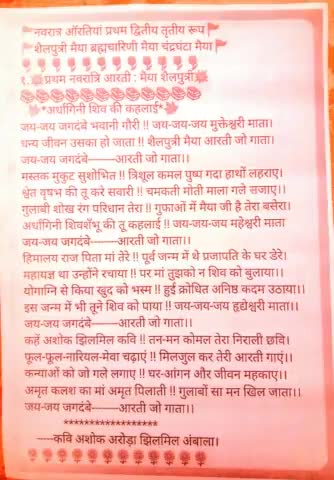 🌷🌹🌹🌺☘🌻मैया शैलपुत्री सबकी मनोकामना पूरी करें🌻🌹🌷कवि अशोक अरोड़ा झिलमिल🍃🌼816 823 4059🌼🌷🌻