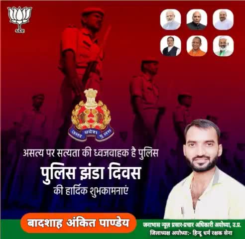 अयोध्या:' "पुलिस झण्डा दिवस"की हार्दिक बधाई एवं मंगलकामनाएं"