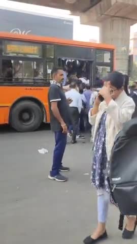 उत्तम नगर इलाके में चलती बस में लोग चढ़ रहे है, इनमे महिलाएं भी शामिल है यदि किसी के साथ कोई हादसा होता है#दिल्ली #news