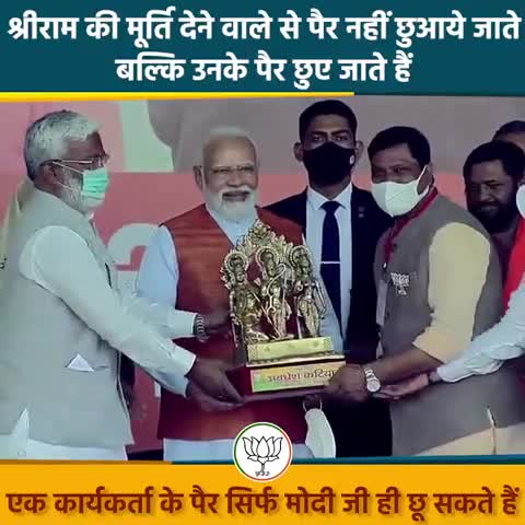 एक कार्यकर्ता के पैर सिर्फ मोदी जी ही छू सकते है वजह ये है कि श्रीराम की मूर्ति देने वाले से खुद के पैर नहीँ छुआ सकते