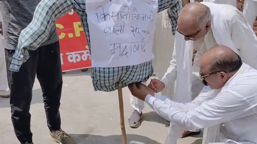 फतेहाबाद सीपीआईएम कार्यकर्ताओं ने स्थानीय बस स्टैंड के सामने फूंका हरियाणा सरकार का पुतला। करनाल किसानों पर लाठीचार्