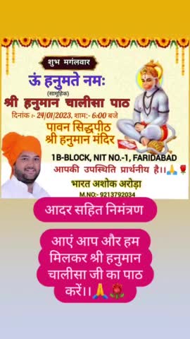 ЁЯЩПрдЖрджрд░ рд╕рд╣рд┐рдд рдирд┐рдордВрддреНрд░рдг ЁЯЩП рдЖрдПрдВ рдЖрдк рдФрд░ рд╣рдо рдорд┐рд▓рдХрд░ рд╢реНрд░реА рд╣рдиреБрдорд╛рди рдЪрд╛рд▓реАрд╕рд╛тАМ рдЬреА рдХрд╛ рдкрд╛рда рдХрд░реЗрдВредредЁЯЩПЁЯМ╣