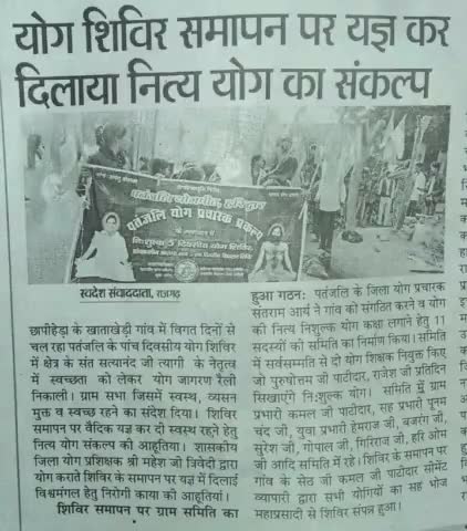 #योग #यज्ञ की बड़ी #महिमा है #भारतीय #संस्कृति का #प्राण है । #राजगढ़ जिला का #राष्ट्रवादी #धार्मिक मीडिया का सहयोग। यादें