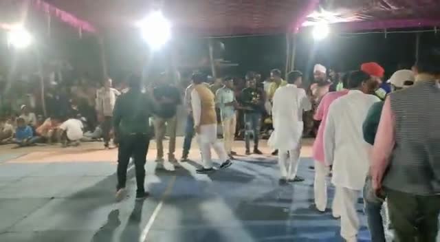 ग्राम बमुलिया ताल में नाईट कबड्डी टूर्नामेंट में अतिथि के रूप में शामिल खिलाड़ियों से परिचय