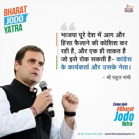 भाजपा पूरे देश में आग और हिंसा फैलाने की कोशिश कर रही है, और एक ही ताकत है जो इसे रोक सकती है - कांग्रेस के कार्यकर्ता और उसके नेता। - श्री राहुल गांधी
