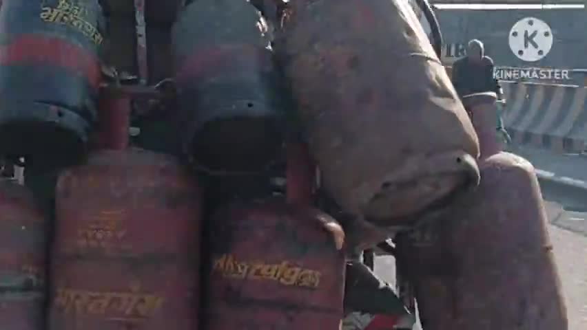 यातायात नियमों की जमकर उड़ाई जा रही है धज्जियां ई रिक्शा चालक क्षमता से अधिक लेकर जा रहा है सिलेंडर