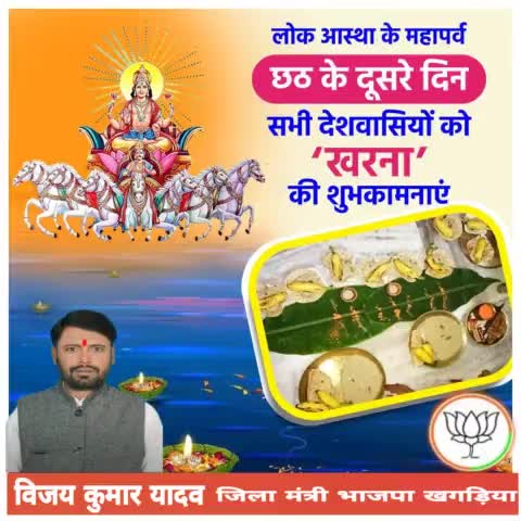 चार दिनों तक चलने वाले लोक आस्था एवं सूर्योपासना के महापर्व छठ पूजा के प्रथम दिवस "नहाय खाय" की आप सभी को हार्दिक बधाई एवं शुभकामनाएं।