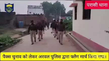 पैक्स चुनाव को लेकर अरवल पुलिस द्वारा फ्लैग मार्च निकाला गया।