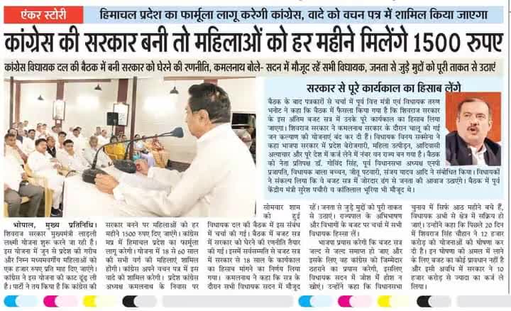मध्यप्रदेश में कांग्रेस सरकार बनने पर महिलाओं को हर महीने मिलेंगे 1500 रूपये। *खुशहाल रहें बेटियाँ सारी,* *समृद्ध बने प्रदेश की नारी।*