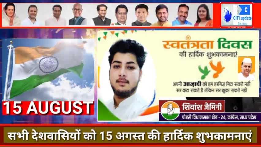 #यूथ_कांग्रेस #शिवपुरी जिला #अध्यक्ष #शिवांश जैमिनी की ओर से समस्त #देशवासियों को 15 अगस्त की हार्दिक #शुभकामनाएं।