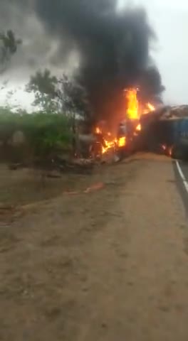झारखंड बिहार बॉर्डर के समीप जम्हारा मोड़ nh33 मैं दो ट्रक की हुई आमने सामने टक्कर ट्रक में लगी भीसन आग