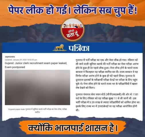 #गुजरात में हो रहे लगातार #पेपर_लीक पर #गोदी_मीडिया की चुप्पी देखिए ... अपने मालिक के राज्य के बारे में लिखने में शर्म क्यों आती है?