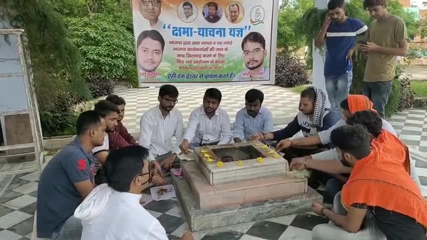 युवा कांग्रेस ने किया क्षमा-याचना यज्ञ का आयोजन, कहा- शिवराज सिंधिया की गलती से ईश्वर प्रदेश की जनता को बचाए