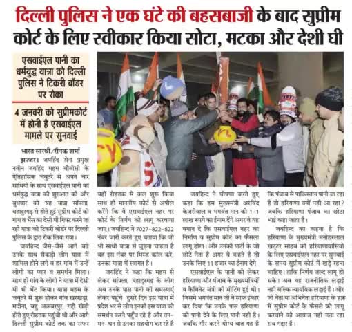 जयहिंद की "पानी का धर्मयुद्ध" यात्रा को टिकरी बॉर्डर पर रोका। दिल्ली पुलिस ने एक घंटे की बहसबाजी के बाद, सुप्रीम कोर्ट के लिए स्वीकार किया सोटा, मटका और देशी घी। #syl_पानी_का_धर्मयुद्ध_यात्रा #सुप्रिम_कोर्ट #हरियाणा #जयहिंद_सेना #नवीन_जयहि