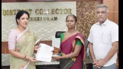 காஞ்சிபுரம் மாவட்ட ஆட்சியர் அலுவலகத்தில், 2024 பாராளுமன்ற தேர்தல் பணியின்போது காலமான திரு.பெ.சீனிவாசன் என்பவரின் மனைவி திருமதி. வி.லட்சுமி என்பவருக்கு தேர்தல் ஆணையத்தால் வழங்கப்படும் நிவாரண இழப்பீடு தொகை ரூ.15 இலட்சத்திற்கான ஆணையை மாவட்ட ஆட்சித்தலைவர் திருமதி. கலைச்செல்வி மோகன், இ.ஆ.ப., அவர்கள் வழங்கினார்கள். உடன் மாவட்ட ஆட்சியரின் நேர்முக உதவியாளர் (வளர்ச்சி) திரு.வே.ராஜ்குமார் உள்ளார்