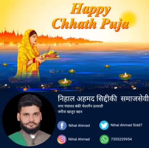 आप सभी #सम्मानित नगर पंचायत बंकी वासियों को #छठ_पूजा की हार्दिक बधाई एवं #शुभकामनाएं ! #नगर_पंचायत_बंकी_चेयरमैन_प्रत्याशी #जरीना_खातून_बहन #निहाल_अहमद_सिद्दीकी (समाजसेवी) सौजन्य से_समस्त #बंकी नगर पंचायत वासी #सहयोगी व #