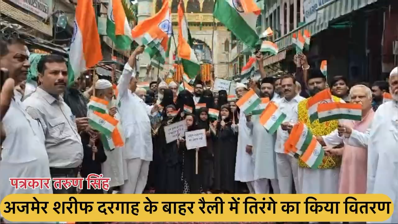 अजमेर शरीफ दरगाह के बाहर रैली में तिरंगे का किया वितरण #ajmer