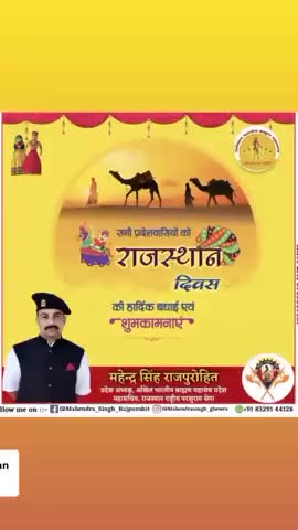 त्याग व बलिदान गौरवशाली इतिहास से परिपूर्ण वीरभूमि “राजस्थान” के स्थापना दिवस के अवसर पर हार्दिक बधाई एवं शुभकामनाएं।