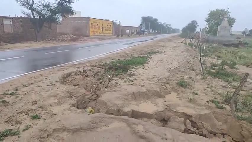 विजयनगर: जैतसर के गांव बुगिया में बरसात से रायसिंहनगर-पदमपुर सड़क मार्ग पर हुआ कटाव, बनी सड़क हादसे की आशंका #जनसमस्या