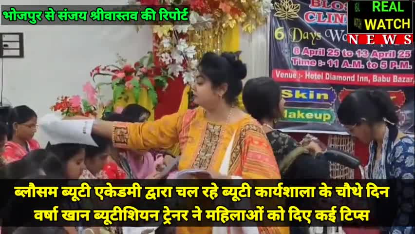 आरा से संजय श्रीवास्तव स्लग। ब्लौसम ब्यूटी एकेडमी द्वारा चल रहे ब्यूटी कार्यशाला के चौथे दिन वर्षा खान ब्यूटीशियन ट्रेनर ने महिलाओं को दिए कई टिप्स एंकर। ब्लौसम ब्यूटी एकेडमी द्वारा चल रहे ब्यूटी कार्यशाला के चौथे दिन वर्षा खान ब्यूटीशियन ट