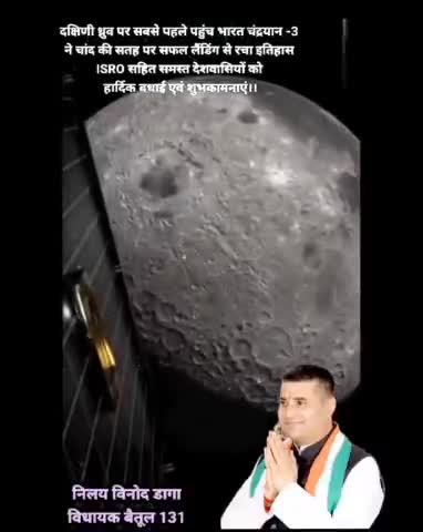 दक्षिणी ध्रुव पर सबसे पहले पहुंच भारत चंद्रयान -3 ने चांद की सतह पर सफल लैंडिंग से रचा इतिहास ISRO सहित समस्त देशवासियों को हार्दिक बधाई एवं शुभकामनाएं।। #चन्द्रयान_3 #Chandrayaan3