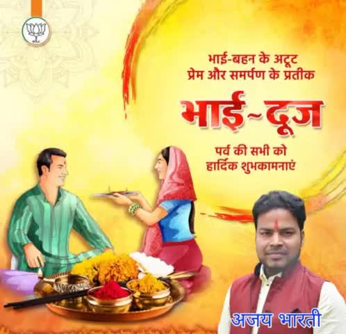 देश एवं प्रदेश वासियों को भाई-बहन के अटूट प्रेम और समर्पण के प्रतीक भाई - दूज पर्व की हार्दिक शुभकामनाएं एवं बधाई🙏