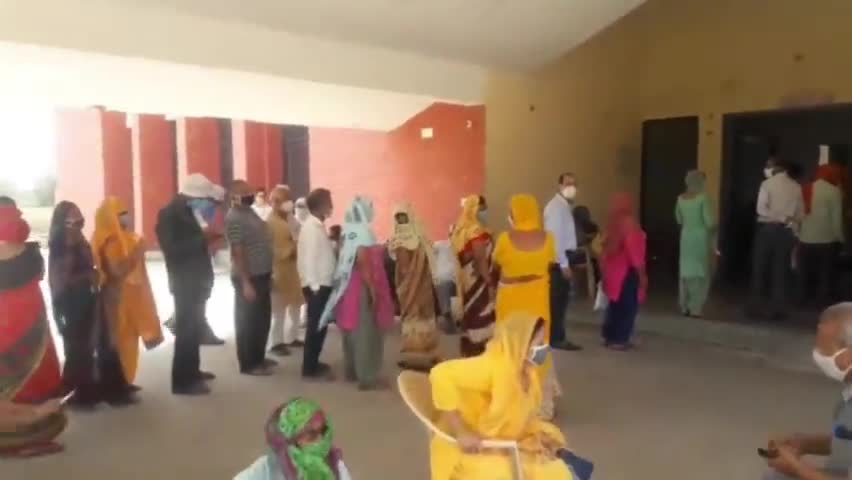 सेक्टर 62 के कम्यूनिटी सेंटर वैक्सीनेशन के लिए लगी लंबी कतार