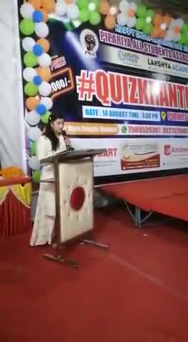 पिपरिया ऑल स्टूडेंट्स एसोसिएशन द्वारा आयोजित क्विज प्रतियोगिता में कार्यक्रम संचालन करती हुई खुशबू नाहर ।