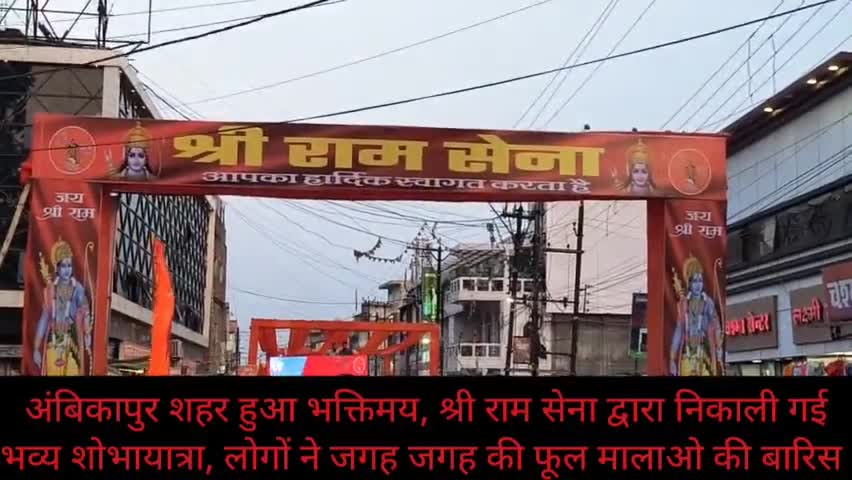 अंबिकापुर: अंबिकापुर शहर हुआ भक्तिमय, श्री राम सेना द्वारा निकाली गई भव्य शोभायात्रा, लोगों ने जगह जगह की फूल मालाओ की बारिस.