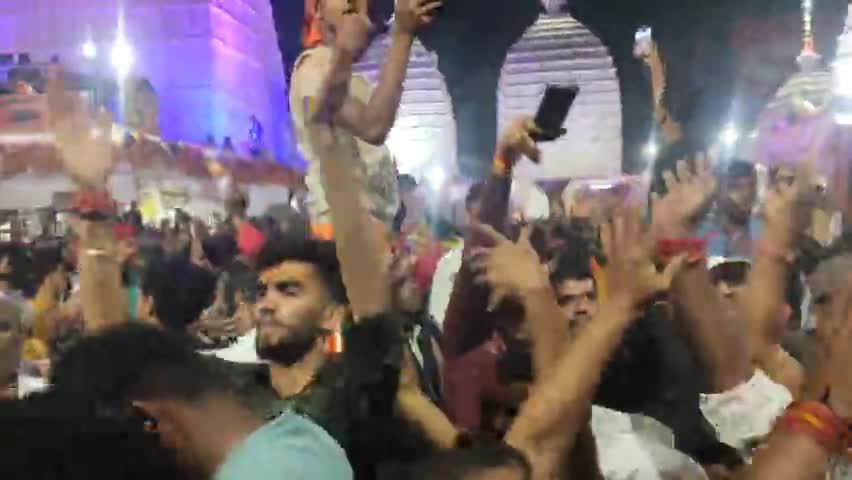 देर रात महाशिवरात्रि के अवसर पर बाबा बैधनाथ धाम मंदिर प्रांगण में भक्ति रस में सराबोर होते हुए श्रद्धालगण। हर हर महादेव
