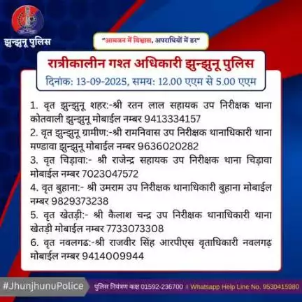रात्रीकालीन गश्त अधिकारी झुन्झुनू पुलिस #JhunjhunuPolice