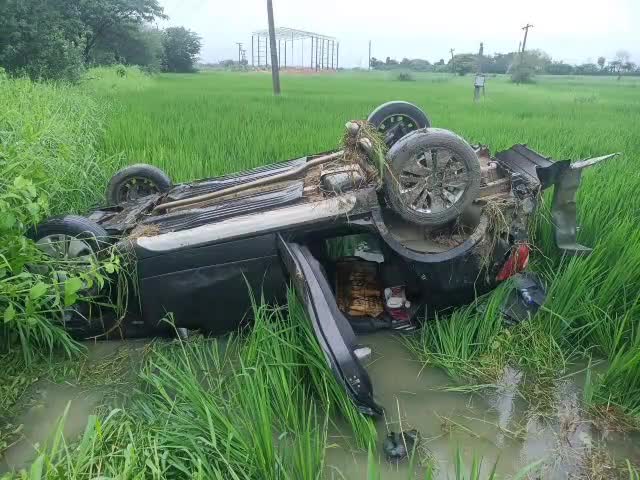 నర్సాపూర్ జి: నందన్ గ్రామ సమీపంలో కారు హ్యాండిల్ లాక్ కావడంతో ప్రమాదవశాత్తు పంటపొలాల్లోకి దూసుకెళ్లి బోల్తా పడిన కారు